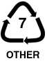 Other: Use of this code indicates that the package in question is made with a resin other than the six listed above, or is made of more than one resin listed above, and used in a multi-layer combination. | Dependent on resin or combination of resins | Three and five gallon reusable water bottles, some citrus juice and catsup bottles. | Bottles, plastic lumber applications |